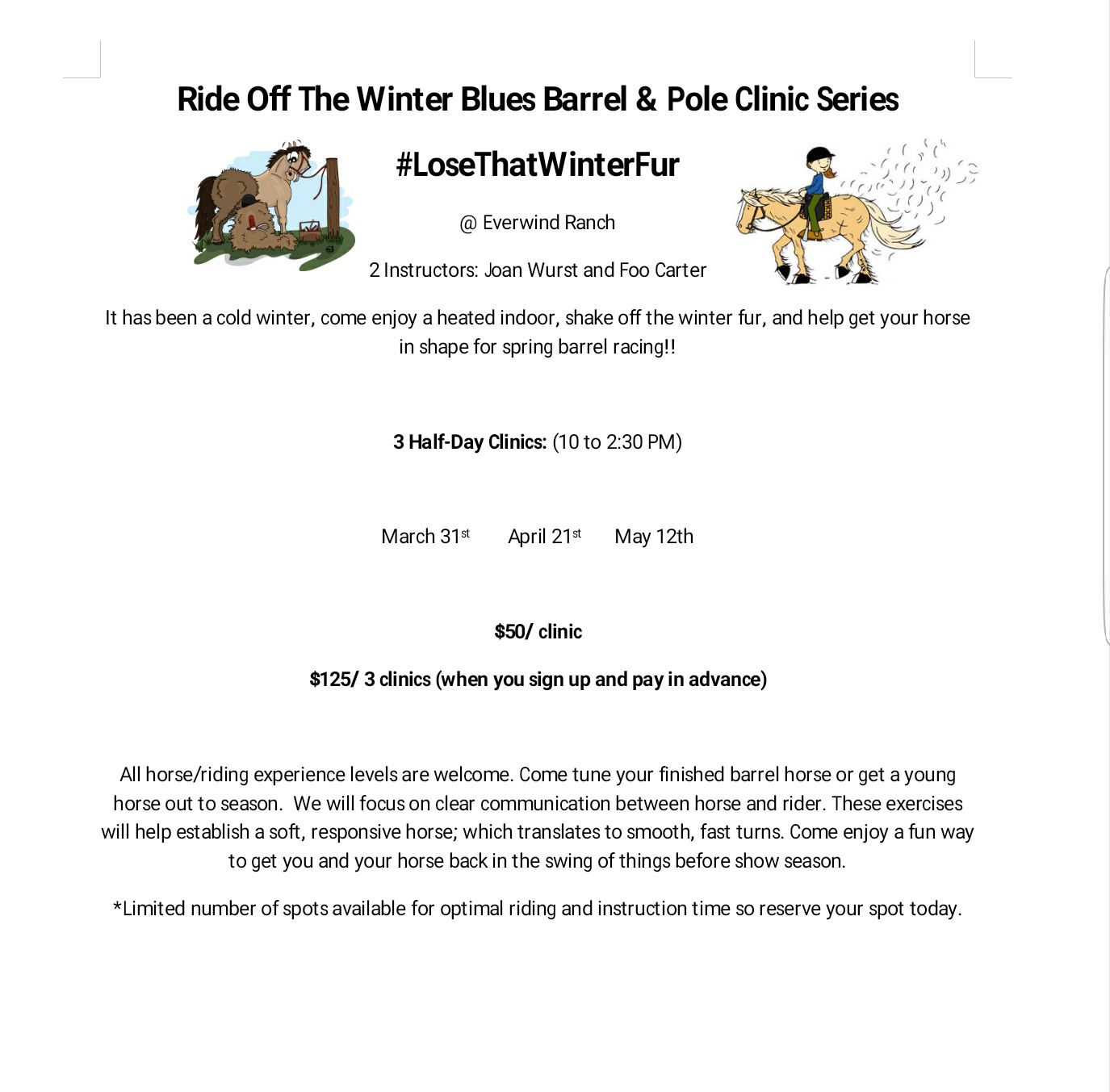 Barrel, poles, horsemanship, all regular camp activities for $475.00.